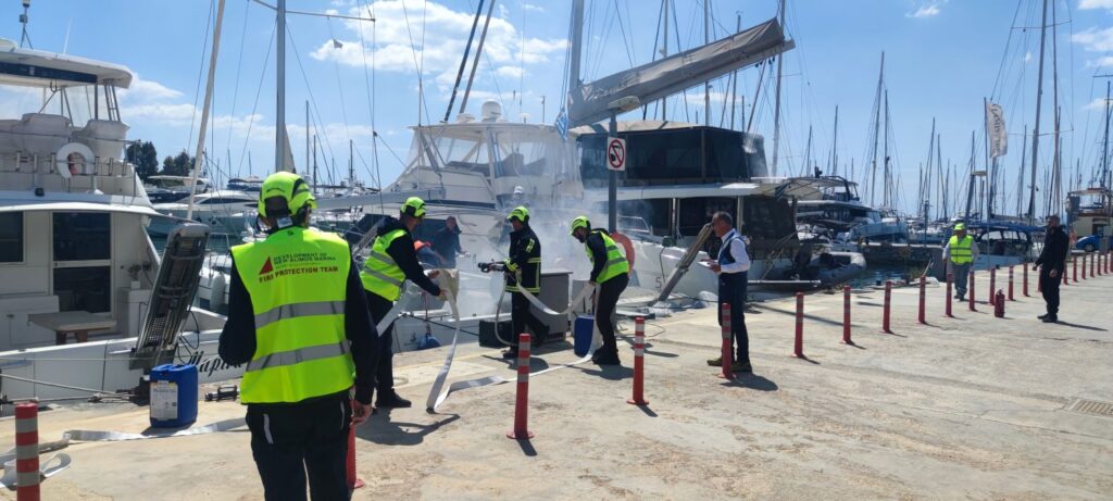 Η άσκηση υλοποιήθηκε από την εκπαιδευμένη ομάδα πυρασφάλειας και πρώτων βοηθειών της μαρίνας, με τη συμμετοχή του προσωπικού και της ομάδας ασφαλείας, σε συνεργασία με την εταιρεία ΠΥΡΟΓΝΩΣΗ.